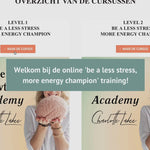 De Online training: Less stress, more energy - Level 1 is dé 14-daagse online cursus die jou een superboost geeft. Vanuit huis werk je stap voor stap aan meer energie, balans en zelfvertrouwen.