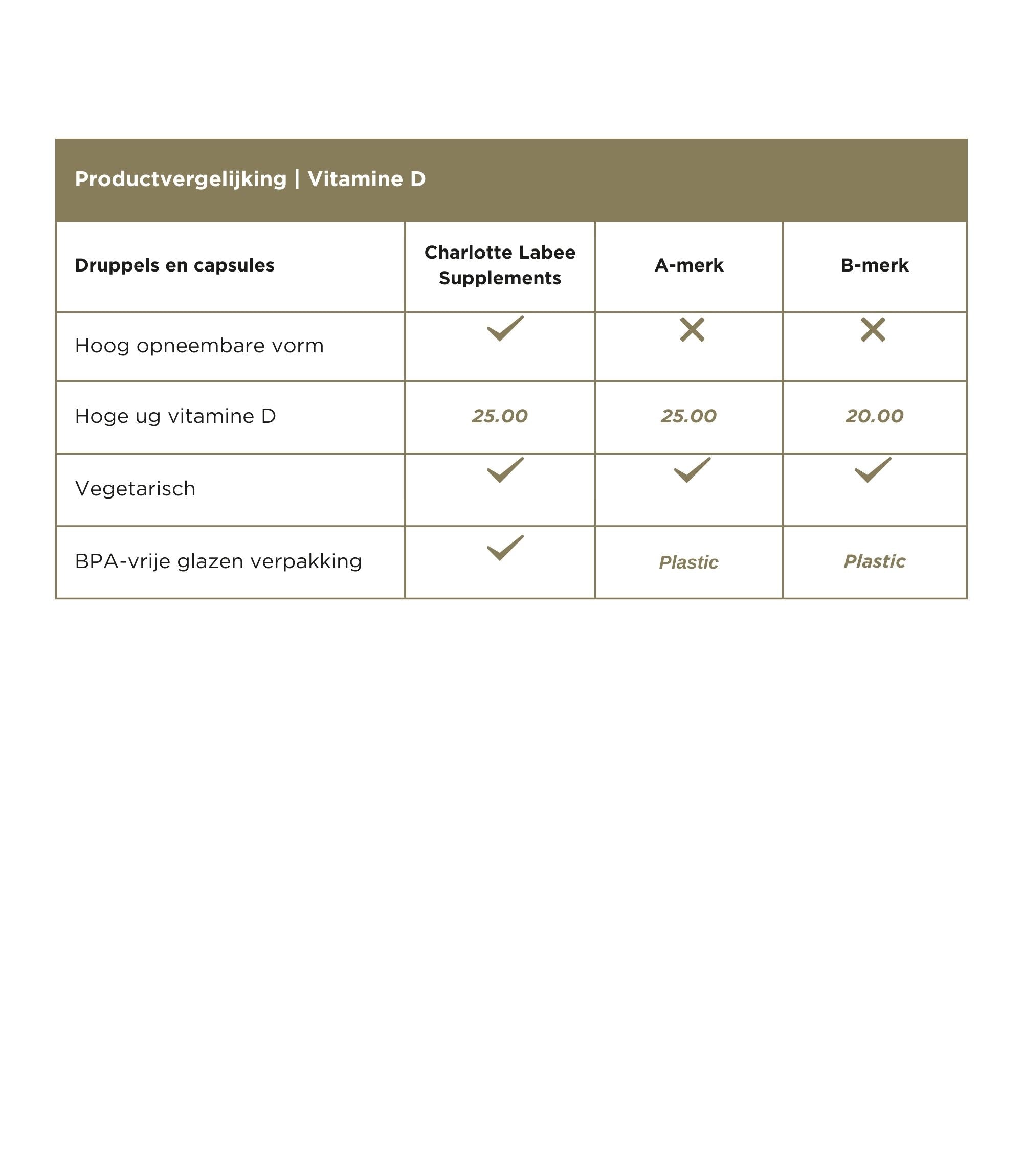 De werking Vitamine D is een vetoplosbare vitamine die belangrijk is voor de opname van calcium uit voeding. Hiermee draagt de stof bij aan het behoud van stevige botten en tanden. Ook is de vitamine betrokken bij een goede werking van de spieren en het immuunsysteem en heeft het een gunstige invloed op het celdelingsproces. De belangrijkste bron van vitamine D is ongetwijfeld zonlicht. Ook kunnen we vitamine D uit voeding halen. Ons lichaam kan baat hebben bij de suppletie van vitamine D. De meest actieve vorm van vitamine D is vitamine D3. Dit supplement bevat ook vitamine K2.